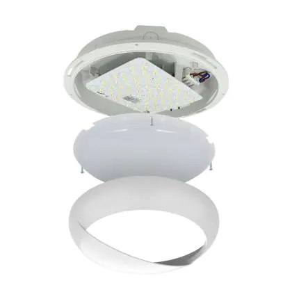 Le Hublot LED Pro V2 Blanc 12/16/20W 2400lm - 830-840-865 CCT | 325mm - IP65 - Détecteur de Mouvement et de Lumière + Visière Cercle Blanc peut très bien être appliqué au mur qu’au plafond. Ce hublot est un luminaire étanche principalement installé dans les lieux de passages. Avec sa technologie LED Intégré, le hublot Budgetlight à un faible impact sur l’environnement et à une durée de vie pouvant tenir jusqu’à 100000 heures. Ce hublot peut également être installé en extérieur et est capable de supporter des températures extrêmes.  Il offre une couleur de lumière de 3000K - 4000K - 6500K CCT et un flux lumineux de 2400 Lm.