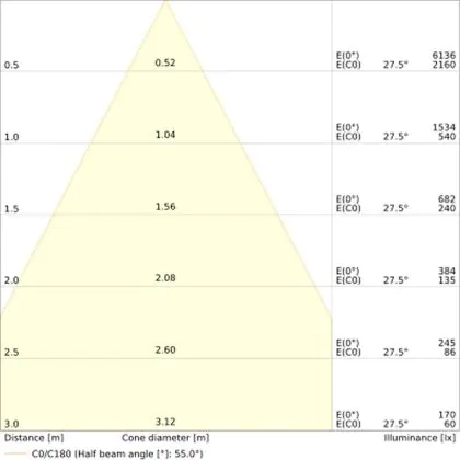 Un angle de diffusion est également appelé angle de rayonnement et indique l'angle du faisceau lumineux provenant d'une source lumineuse. Plus l'angle de diffusion en degrés (D) est petit, plus le faisceau est étroit. Vous voulez en savoir plus? Alors lisez notre blog.