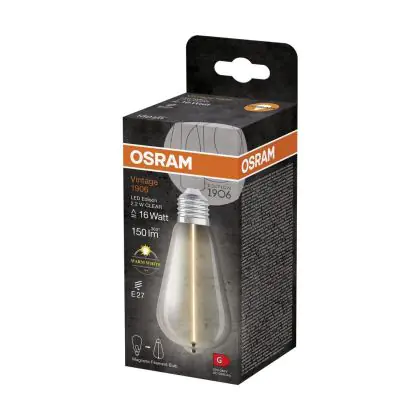 Cette ampoule Osram Vintage 1906 LED E27 Special Filament Claire Edison 2.2W 150lm - 827 | Remplacement 15W est l’alternative idéale pour la remplacement de votre ampoule classique de 15 W. La technologie LED intégrée vous offrira de nombreux avantages. Les ampoules à incandescence traditionnelles ont une durée de vie limitée. Cette alternative LED vous permettra de profiter d’un éclairage durable et fiable.