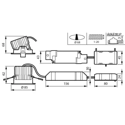 La découpe d'un luminaire diffère des dimensions et fait spécifiquement référence à la taille du trou dans le plafond nécessaire pour fixer solidement la source lumineuse lors de l'installation.